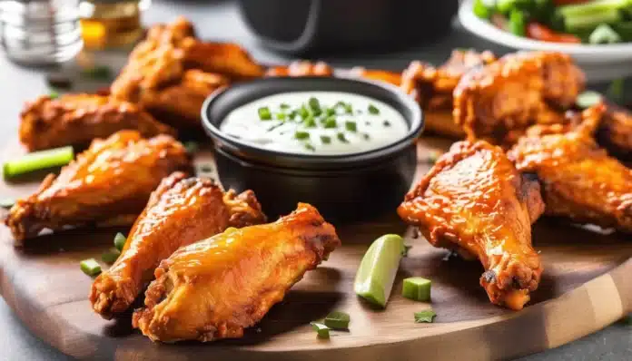 - Serve the wings immediately with your favorite dipping sauces, such as ranch or blue cheese dressing, and celery sticks.