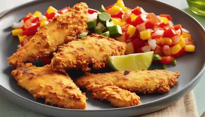- Serve: Serve the crispy Fiesta Chicken Fingers hot with salsa, guacamole, or your favorite dipping sauce.