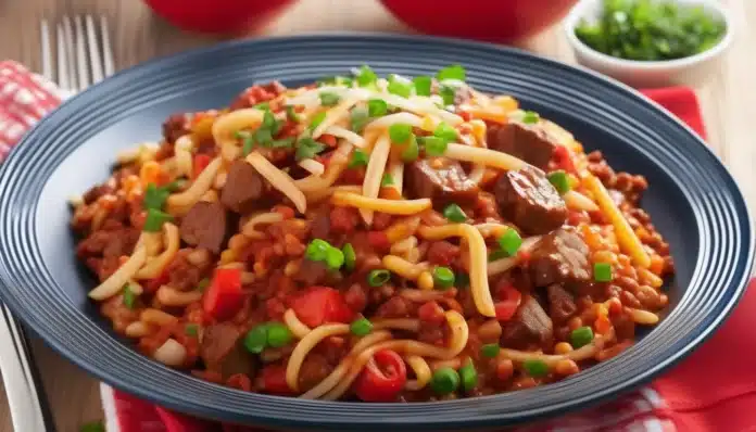 Enjoy the comforting taste of American Chop Suey, a dish that brings warmth and nostalgia to the table.