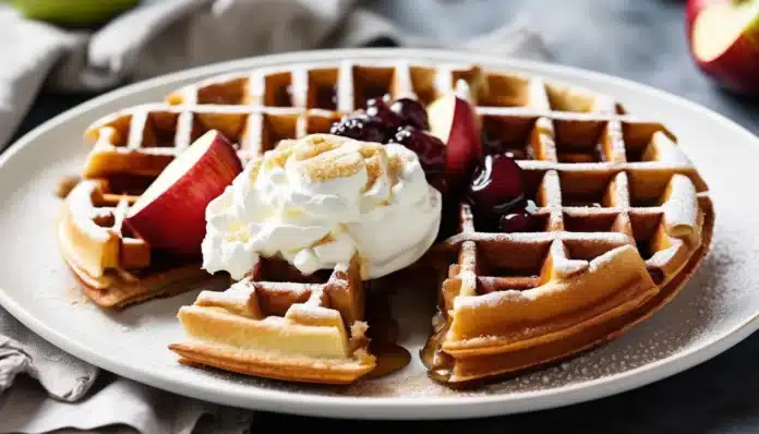- Serve: Serve the waffles hot with a drizzle of maple syrup and a dollop of whipped cream.