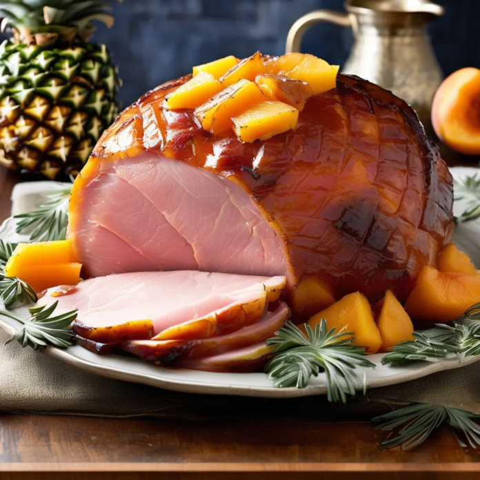 Apricot Pineapple Ham is a show-stopping dish that’s perfect for holiday gatherings or special occasions. This succulent ham is glazed with a sweet and tangy mixture of apricot preserves, pineapple juice, and Dijon mustard, creating a beautifully caramelized crust that complements the savory richness of the ham. The combination of fruity flavors from the apricots and pineapples, with a hint of mustard’s sharpness, adds a delightful contrast that enhances the natural taste of the ham. Baked to perfection, this dish is as delicious as it is visually appealing, making it a centerpiece worthy of any festive table.