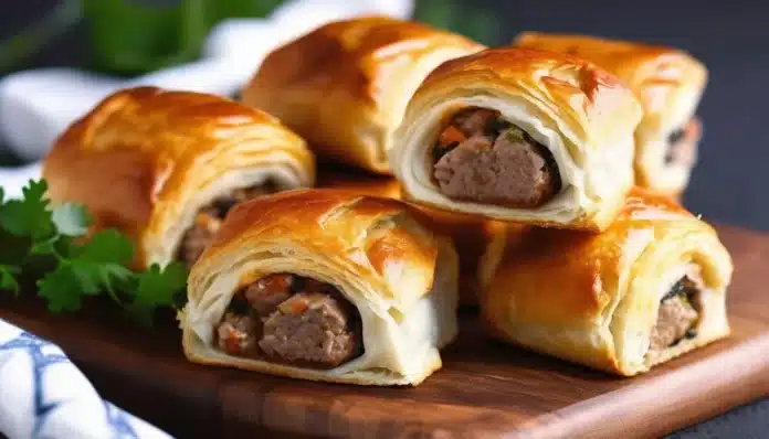 7. Bake: Bake in the preheated oven for 20-25 minutes, or until the pastry is golden brown and the sausage filling is cooked through.