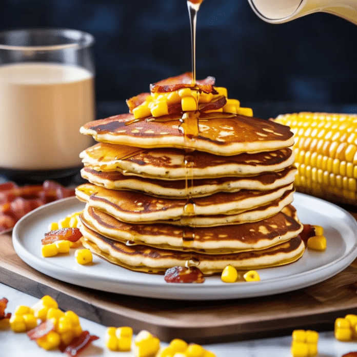 Enjoy these Bacon Corn Pancakes as a delicious and hearty option that brings a savory twist to your traditional breakfast pancakes.