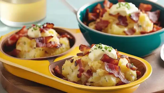 Bacon-Gruyere Smashed Potatoes are a rich and indulgent side dish that takes classic comfort food to the next level. These potatoes are first boiled until tender, then gently smashed and topped with crispy bacon, nutty Gruyere cheese, and a sprinkle of fresh herbs. The combination of creamy potatoes, smoky bacon, and melted Gruyere creates a deliciously savory dish that’s perfect for a special dinner or holiday feast. The crispy edges of the smashed potatoes add a delightful texture, while the melted cheese and bacon make every bite irresistible. Serve these alongside roasted meats or as a star dish at your next gathering, and watch them disappear quickly!