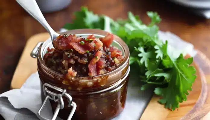 Bacon Onion Jam is a rich, sweet, and savory spread made by slowly caramelizing onions with crispy bacon, brown sugar, and a touch of vinegar. The combination of smoky bacon and sweet onions creates a jammy, flavorful condiment that’s perfect for spreading on burgers, sandwiches, or even atop a cheese board. This versatile jam has a deep, complex flavor that balances sweetness with the savory punch of bacon, making it a crowd-pleasing addition to any meal. Whether used as a topping or a dip, Bacon Onion Jam is a delicious way to elevate your dishes.