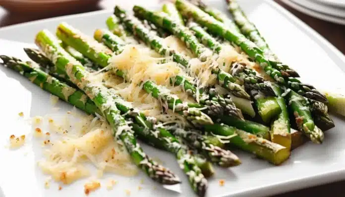 - Bake: Place the baking sheet in the preheated oven and bake for 12-15 minutes, or until the asparagus is tender and the Parmesan is golden and crispy.