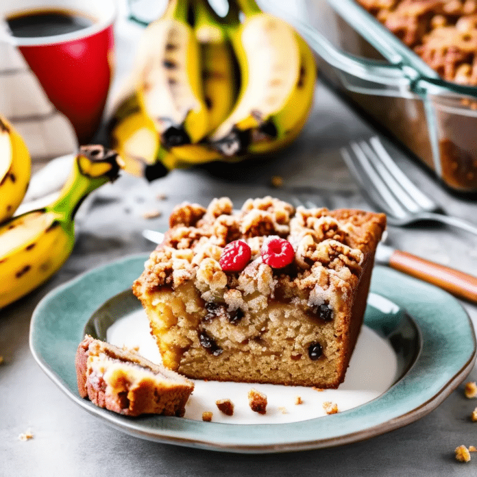 This Banana Bread Coffee Cake offers the perfect combination of moist banana goodness and a sweet, crunchy topping, making it a delicious treat for any time of day!