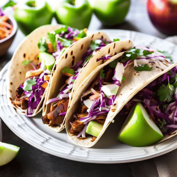 Barbecue pork tacos with apple slaw offer the perfect blend of smoky, sweet, and tangy flavors, all wrapped up in a soft tortilla. Tender, flavorful barbecue pork is paired with a crisp and refreshing apple slaw, creating a delightful contrast of textures and tastes. These tacos are a fun, easy way to enjoy a delicious fusion of barbecue and fresh slaw, making them an ideal choice for a casual weeknight dinner or a lively gathering with friends. The combination of savory pork and the tangy crunch of the slaw will leave you craving more.