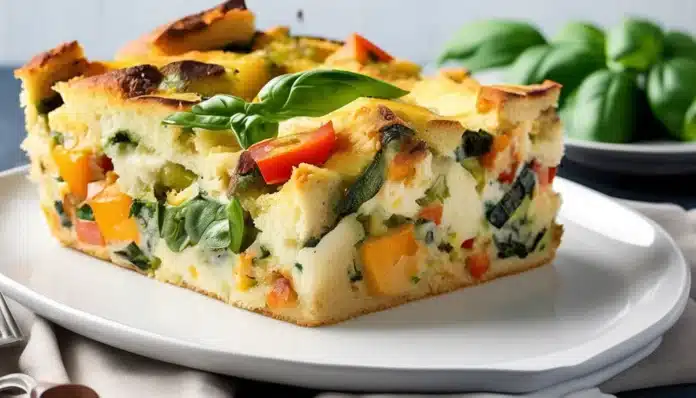 This Basil Vegetable Strata is perfect for a crowd and can be prepared the night before, making it a convenient and delicious option for any occasion.