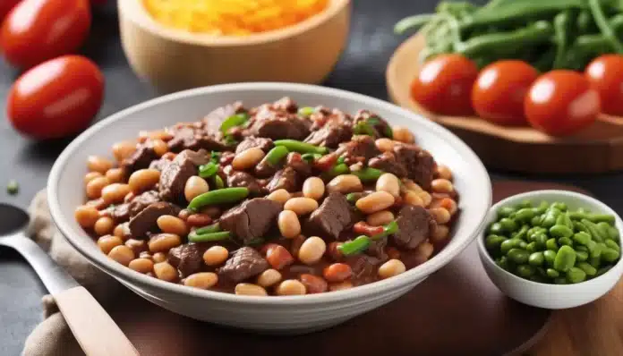 - Serve: Once the beef and beans are cooked through and the flavors are well combined, remove from heat. Garnish with fresh cilantro or green onions if desired, and serve hot.