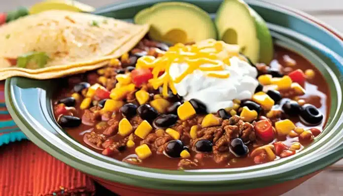 Enjoy your Beef Taco Chili, a deliciously hearty and flavorful dish that brings the best of chili and tacos together in one bowl!
