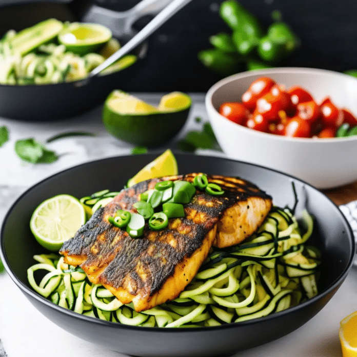 Blackened Tilapia with Zucchini Noodles is a light, healthy, and flavorful dish that combines tender, spicy fish with fresh, crisp zucchini noodles. The blackened seasoning on the tilapia gives it a bold, smoky flavor, while the zucchini noodles keep the meal low-carb and refreshing. This quick and easy recipe is perfect for a weeknight dinner that feels both satisfying and guilt-free. It’s a great way to enjoy seafood and veggies in a simple yet delicious way.