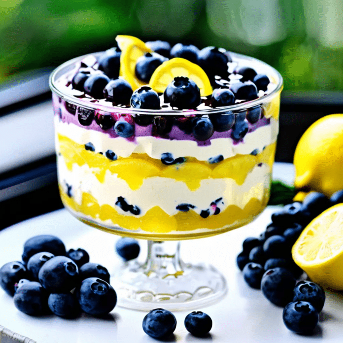 Blueberry lemon trifle is a refreshing and elegant dessert that layers light, fluffy cake with zesty lemon curd, juicy blueberries, and whipped cream. This trifle is a perfect harmony of sweet and tart, with the vibrant lemon flavor brightening the rich creaminess and the fresh blueberries adding a burst of fruity goodness. Served in a glass dish, the beautiful layers of yellow and blue make this dessert a stunning centerpiece for any occasion, whether it’s a summer picnic, a holiday celebration, or a casual family gathering. Simple to assemble yet sophisticated in flavor, this trifle is a delightful way to impress your guests with minimal effort.