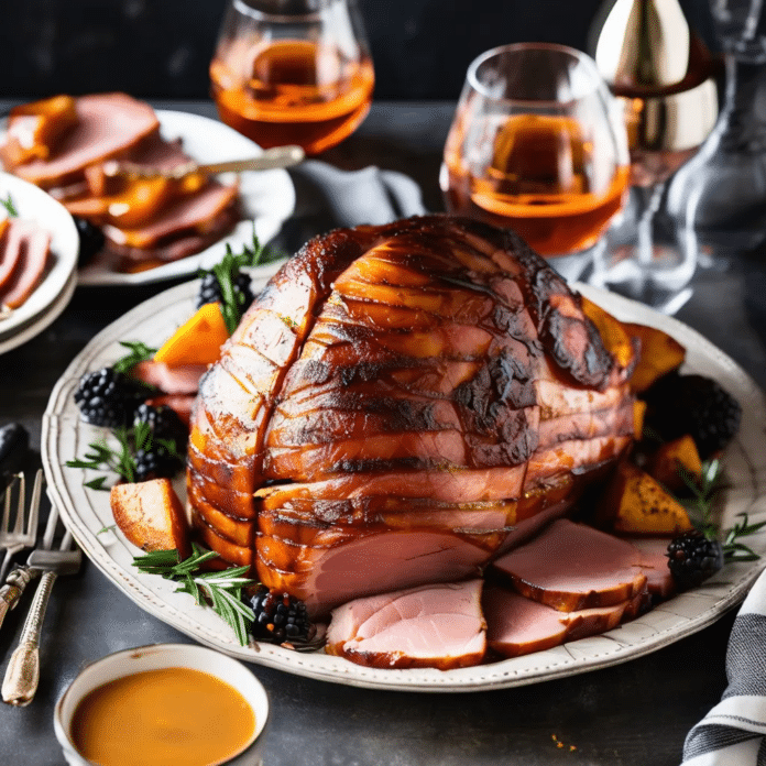 Bourbon Baked Ham is a show-stopping main dish that’s perfect for special occasions and holiday gatherings. This recipe takes a classic baked ham and elevates it with a sweet, smoky bourbon glaze that caramelizes beautifully in the oven. The combination of rich, savory ham with the bold flavors of bourbon, brown sugar, and mustard creates a dish that’s both indulgent and unforgettable. Whether you’re serving it as the centerpiece of your holiday table or for a celebratory dinner, this Bourbon Baked Ham is sure to impress your guests and leave them asking for seconds.
