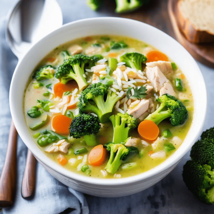 Broccoli-Chicken Rice Soup is a hearty, comforting dish that combines tender chicken, nutritious broccoli, and fluffy rice in a creamy, flavorful broth. This soup is perfect for chilly days or when you’re craving something warm and satisfying. The combination of savory chicken, wholesome vegetables, and rice makes it a complete meal in a bowl, offering both comfort and nourishment. The creamy base is rich without being too heavy, allowing the flavors of the chicken and broccoli to shine through. Whether you’re making it for a weeknight dinner or a cozy weekend lunch, Broccoli-Chicken Rice Soup is sure to become a family favorite.