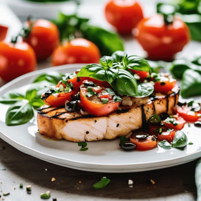 Bruschetta Chicken is a fresh and flavorful dish that combines the classic Italian flavors of bruschetta with tender, juicy chicken breasts. This dish features grilled or pan-seared chicken topped with a vibrant mixture of ripe tomatoes, fresh basil, garlic, balsamic vinegar, and olive oil. The result is a light yet satisfying meal that’s perfect for summer dinners or any time you’re craving something delicious and healthy. Served over a bed of pasta, with a side of crusty bread, or on its own with a salad, Bruschetta Chicken is an easy-to-make dish that’s sure to impress family and friends with its colorful presentation and delightful taste.