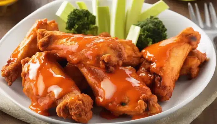• Serve the Buffalo Chicken Wings hot, with celery sticks and blue cheese or ranch dressing on the side.