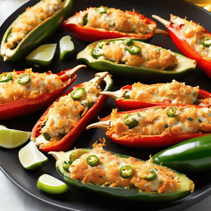 Cajun Crab Jalapeños bring a touch of Southern flair to a classic party appetizer. These spicy jalapeño peppers are stuffed with a creamy, Cajun-seasoned crab mixture, then baked until tender and bubbling with cheesy goodness. The heat from the jalapeños pairs perfectly with the rich, flavorful crab filling, which is seasoned with a blend of Cajun spices for an extra kick. Whether you’re hosting a gathering or simply want to indulge in a decadent treat, these Cajun Crab Jalapeños are sure to impress with their combination of heat, spice, and savory crab.