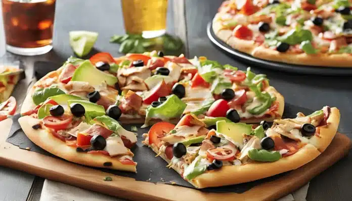 California Chicken Club Pizza is a fresh and flavorful twist on the classic club sandwich, transformed into a delicious pizza. With a base of creamy ranch sauce, this pizza is topped with juicy chicken, crispy bacon, ripe avocado slices, and a blend of mozzarella and cheddar cheese. The combination of savory chicken and bacon with the creamy avocado and tangy ranch creates a perfect harmony of flavors. This pizza is a fun, crowd-pleasing meal that’s perfect for family dinners or casual gatherings.