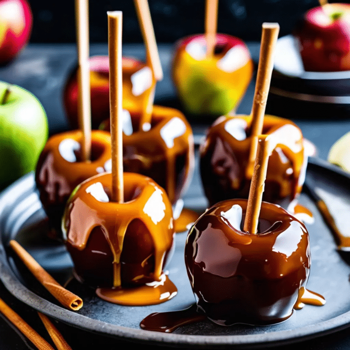 Caramel Apples are a classic fall treat that combine the crisp, tart taste of fresh apples with a rich and buttery caramel coating, making them a delightful snack for both kids and adults alike. This iconic autumn dessert is perfect for Halloween parties, fall festivals, or just a cozy night in. The apples are dipped in a homemade caramel sauce made from brown sugar, butter, and sweetened condensed milk, which provides a deliciously sweet and sticky coating that hardens slightly as it cools. For added flavor and texture, the caramel-coated apples can be rolled in a variety of toppings such as chopped nuts, chocolate chips, or sprinkles. These Caramel Apples are not only easy to make but also a fun and nostalgic treat that everyone will love.