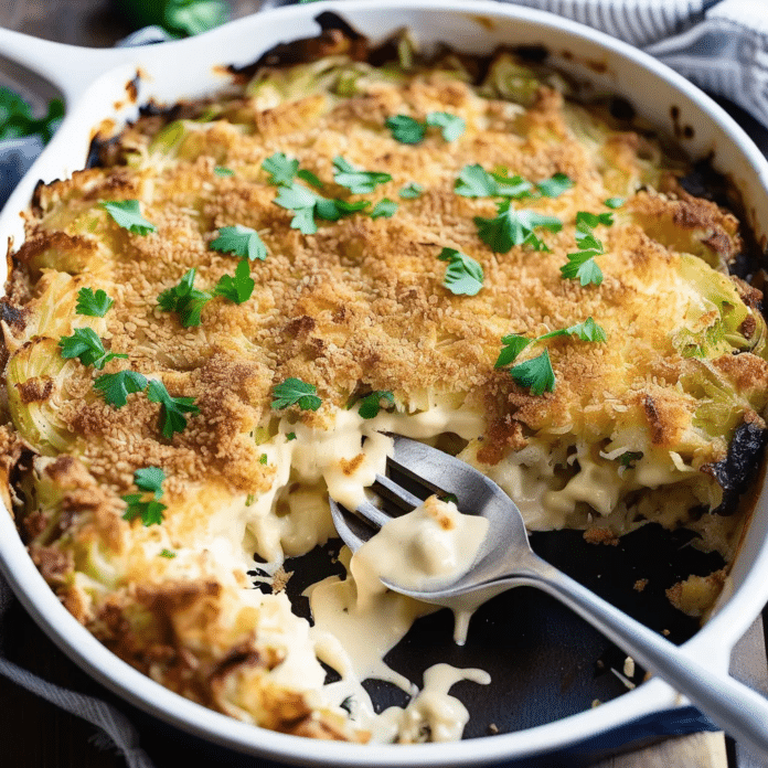 Charred Cabbage Skillet Gratin is a rustic and comforting dish that beautifully combines smoky, caramelized cabbage with a rich and creamy cheese sauce. The cabbage, when charred, takes on a deep, savory flavor that pairs perfectly with the crispy, golden breadcrumb topping. This gratin is a hearty yet simple dish that works as a delicious side or a light main course, making it an unexpectedly delightful way to enjoy cabbage.