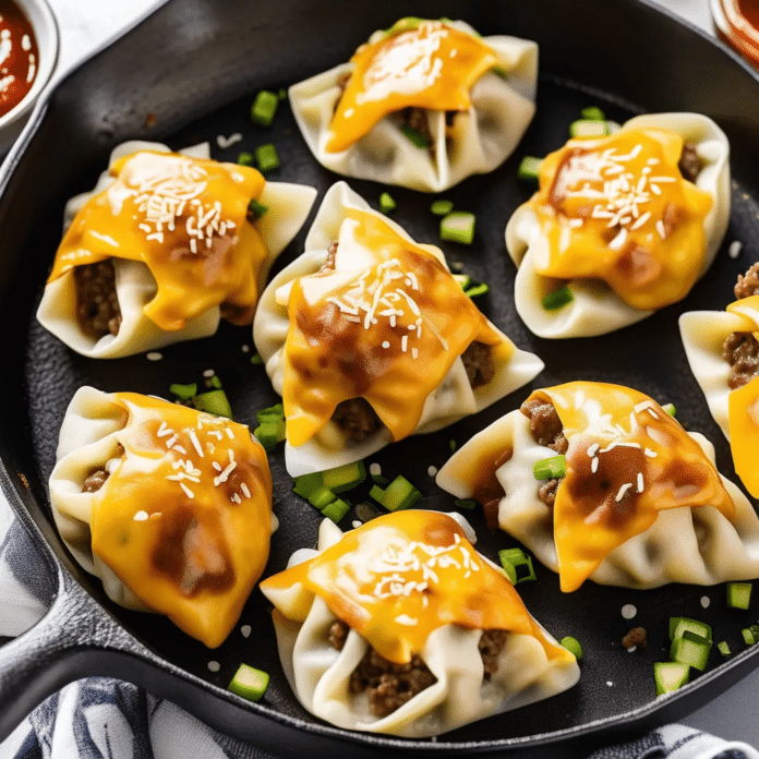 Cheeseburger Dumplings are a fun and delicious fusion of two classic comfort foods: the juicy cheeseburger and the satisfying dumpling. These dumplings are filled with seasoned ground beef, melty cheese, and a touch of mustard and ketchup for that authentic cheeseburger flavor, then steamed or pan-fried until golden and crispy. Perfect as an appetizer, snack, or even a fun dinner idea, these dumplings offer a bite-sized take on a beloved American classic with an unexpected twist that everyone will love.