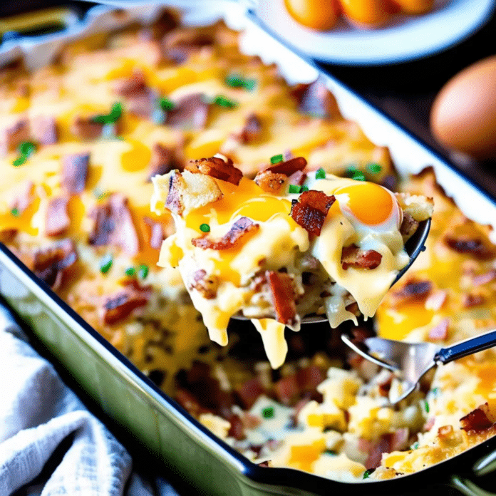 Cheesy Breakfast Potato Casserole is the ultimate comfort food for breakfast or brunch, combining tender potatoes with melted cheese, savory bacon or sausage, and fluffy scrambled eggs. This hearty casserole is easy to prepare, perfect for feeding a crowd, and can be customized with your favorite breakfast ingredients. The combination of crispy hash browns, creamy cheese, and a rich egg mixture makes every bite indulgent and satisfying. It’s a great make-ahead dish that can be assembled the night before and baked fresh in the morning, making it an ideal choice for holiday mornings or family gatherings.