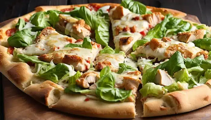 Enjoy your Chicken Caesar Pizza, combining the best of both worlds in one satisfying dish!
