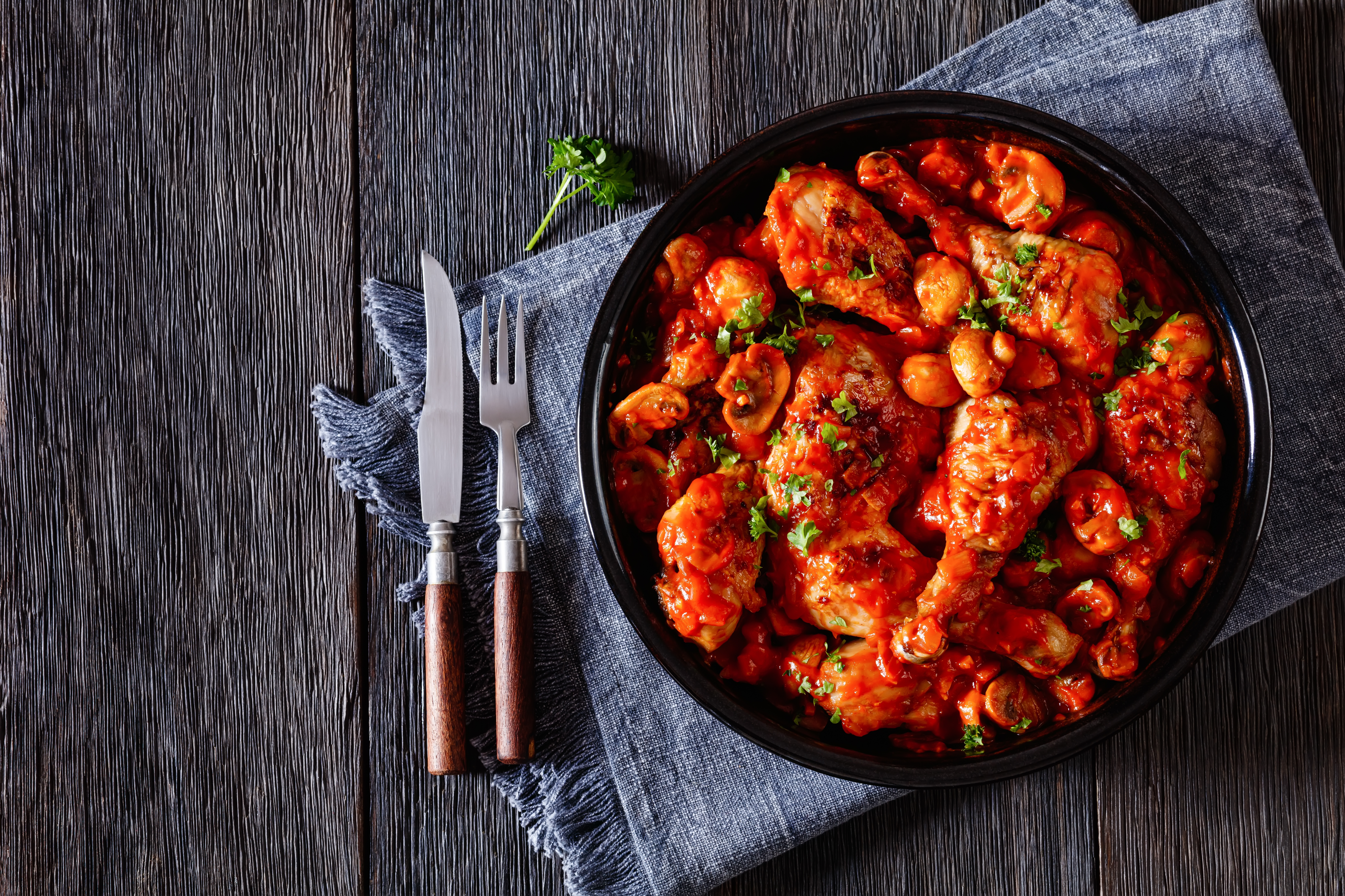 Chicken Chasseur, also known as “Hunter’s Chicken,” is a classic French dish that combines tender chicken with a rich, savory sauce made from mushrooms, tomatoes, white wine, and aromatic herbs. The name “chasseur” refers to its origins as a dish prepared by hunters in the French countryside. The flavors are deep and complex, yet the preparation is simple enough for a cozy weeknight dinner. Perfectly paired with mashed potatoes, rice, or crusty bread, Chicken Chasseur offers a comforting and satisfying meal that captures the essence of traditional French cuisine with its earthy and hearty flavors.