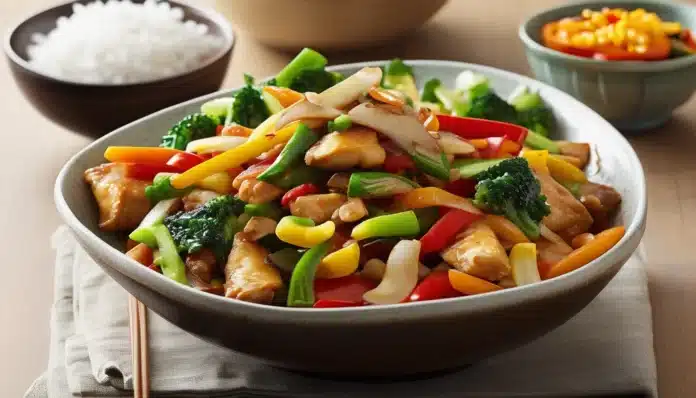 - Serve: Serve the Chicken Chop Suey over steamed jasmine rice or noodles. Enjoy the dish hot, garnished with extra green onions or sesame seeds if desired.