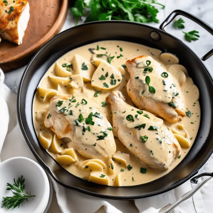 Chicken in Cream Sauce is a decadent yet simple dish that brings rich, creamy flavors to your table with minimal effort. The tender chicken paired with the smooth, velvety sauce makes this meal a surefire hit for any occasion.