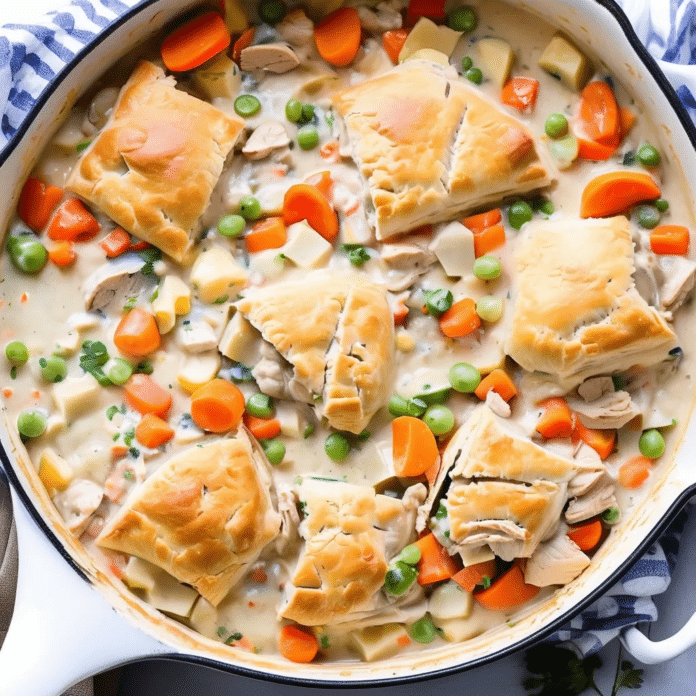 Chicken Pot Pie Casserole is a comforting and hearty twist on the classic chicken pot pie, made even easier by turning it into a family-sized casserole. With a creamy, savory filling of tender chicken, vegetables, and a luscious gravy, topped with golden, flaky biscuits or puff pastry, this dish is perfect for feeding a crowd or enjoying leftovers the next day. It’s the ultimate comfort food that combines the warmth of a pot pie with the convenience of a one-pan meal, making it ideal for busy weeknights or cozy weekend dinners.