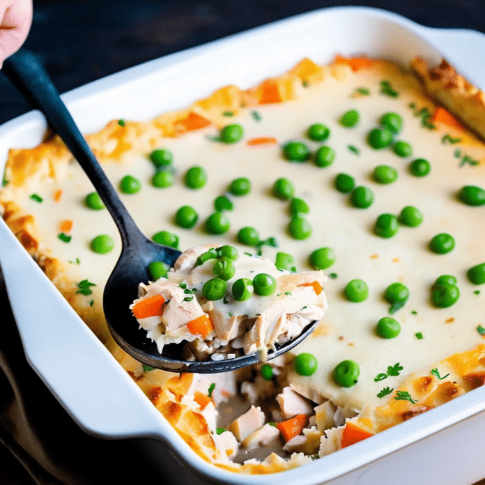Chicken Shepherd’s Pie is a comforting twist on the classic dish, combining tender chicken with a medley of vegetables, all nestled under a golden layer of creamy mashed potatoes. This savory pie is perfect for a cozy family dinner, offering a balance of flavors and textures that everyone will enjoy. The chicken is cooked with aromatic herbs and spices, while the vegetables add a delightful crunch and sweetness, making this dish a hearty and satisfying meal. Whether you’re looking for a comforting weeknight dinner or a crowd-pleasing dish for a special occasion, Chicken Shepherd’s Pie is sure to delight.