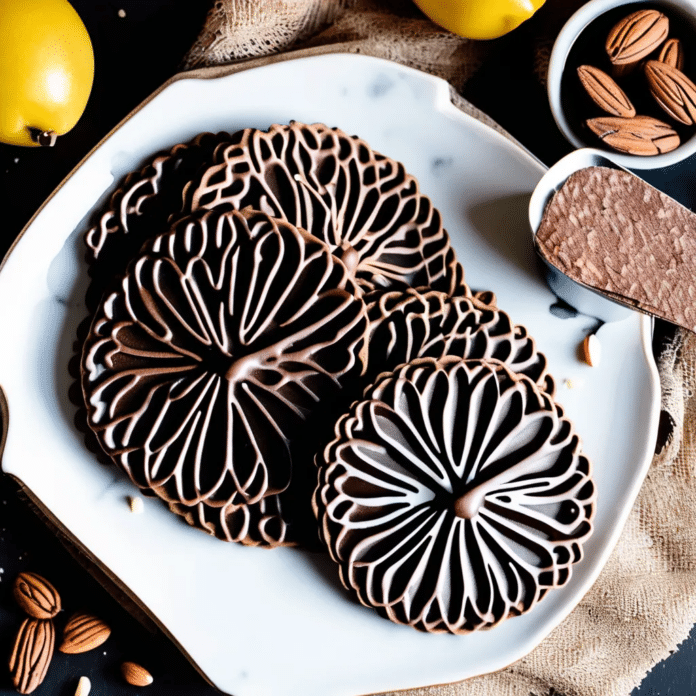 Chocolate Almond Pizzelles are a delightful twist on the traditional Italian waffle cookie. These thin, crisp cookies are infused with rich cocoa and nutty almond flavors, making them perfect for holiday treats, coffee accompaniments, or even homemade ice cream sandwiches. The pizzelle batter is cooked on a specialized iron, giving them their signature delicate, waffle-like appearance. Lightly dusted with powdered sugar, they’re a beautiful and delicious addition to any dessert table, offering a satisfying balance of chocolate sweetness and almond nuttiness in every bite.