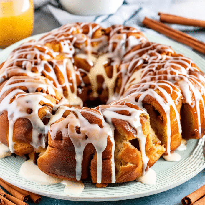 - Drizzle with Icing: While the monkey bread is cooling, warm the reserved icing that came with the cinnamon rolls. Drizzle the icing over the top of the monkey bread.