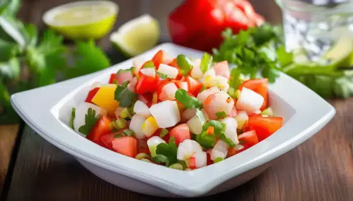 Conch Salad is a vibrant and refreshing dish hailing from the Caribbean, particularly the Bahamas, where it’s a popular and beloved delicacy. This salad is a perfect balance of tender, diced conch meat with a medley of crisp vegetables and a tangy, citrusy marinade. The combination of sweet bell peppers, juicy tomatoes, crunchy cucumbers, and spicy jalapeños creates a colorful and flavorful dish that’s as visually appealing as it is delicious. The lime and orange juice in the dressing not only adds brightness but also slightly “cooks” the conch, resulting in a fresh and zesty salad that’s perfect for a light meal or as a starter.