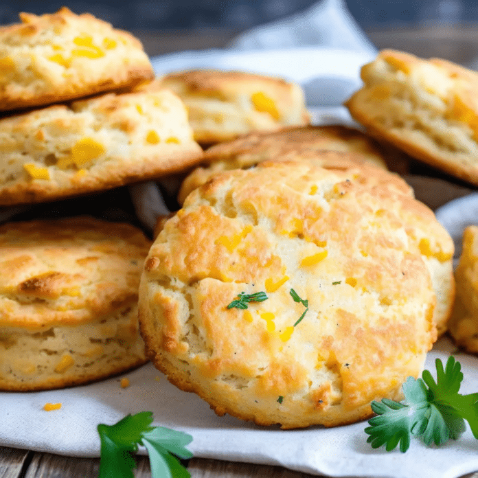 Cornmeal Cheddar Biscuits are a savory, golden delight that combines the crumbly texture of classic biscuits with the subtle crunch of cornmeal and the rich, tangy flavor of sharp cheddar cheese. These biscuits are perfect for breakfast, brunch, or as a side to your favorite soup or stew. The addition of cornmeal gives them a slightly rustic texture, while the cheddar adds a savory depth that makes them irresistibly flavorful. Whether enjoyed fresh out of the oven with a pat of butter or as a sandwich base, these biscuits are sure to become a favorite.