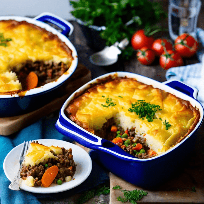 Cottage pie, often called shepherd’s pie when made with lamb, is a comforting British classic. It’s a hearty dish featuring a flavorful ground meat base topped with a layer of creamy mashed potatoes, then baked to golden perfection. The savory filling is typically made with beef (for cottage pie) or lamb (for shepherd’s pie), mixed with vegetables like carrots and peas, and cooked in a rich gravy. This warm, filling meal is perfect for family dinners or a cozy night in, offering layers of flavor and a satisfying balance between the creamy potatoes and savory meat filling.