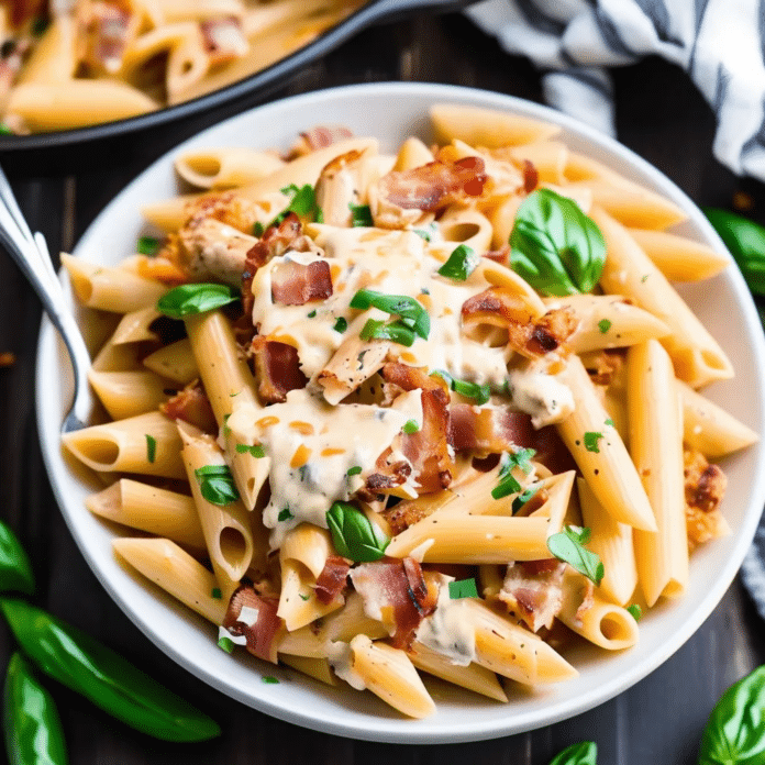 Crack Chicken Penne is a rich, creamy pasta dish loaded with bold flavors from ranch seasoning, crispy bacon, tender chicken, and gooey melted cheese. This comforting meal combines everything you love in one bowl – from savory chicken to the indulgence of cream cheese and cheddar, all tossed with perfectly cooked penne pasta. It’s an easy, crowd-pleasing recipe that’s perfect for weeknight dinners or casual gatherings, offering a delicious blend of textures and flavors that will leave everyone coming back for seconds.