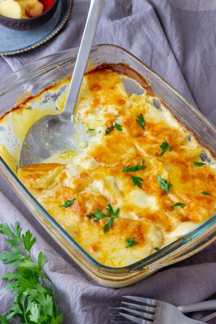 8. Serve: Let the au gratin potatoes cool for a few minutes before serving. Garnish with chopped fresh parsley.