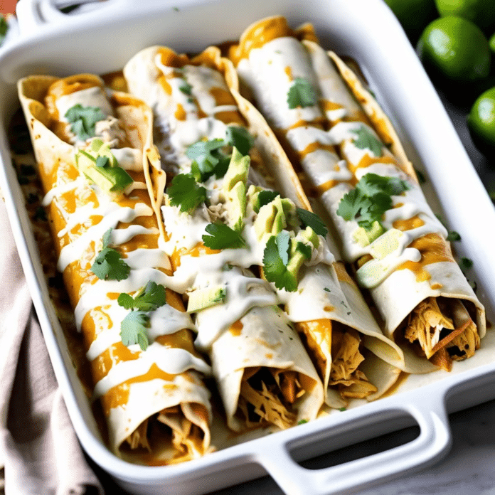 Creamy Mississippi Chicken Enchiladas combine the zesty, savory flavors of the classic Mississippi roast with a creamy twist, wrapped in soft tortillas and baked to bubbly perfection. Tender shredded chicken is mixed with tangy ranch seasoning, pepperoncini, and cream cheese, then rolled up in tortillas and topped with a creamy sauce and melted cheese. These enchiladas are a delicious fusion of Southern and Mexican flavors, making them a unique, crowd-pleasing dish perfect for weeknight dinners or entertaining guests.