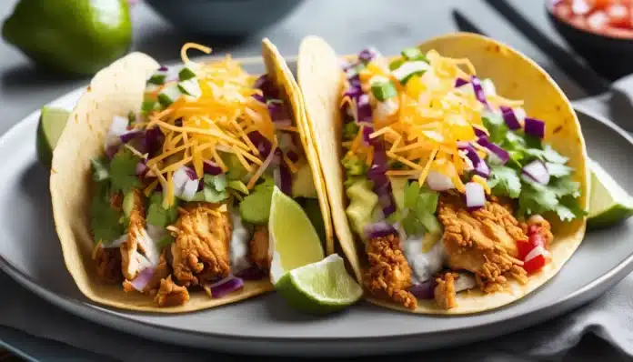 - Assemble the Tacos: Warm the tortillas in a dry skillet or microwave. Place a few crispy chicken strips in each tortilla. Top with shredded lettuce, diced tomatoes, avocado slices, and shredded cheddar cheese.