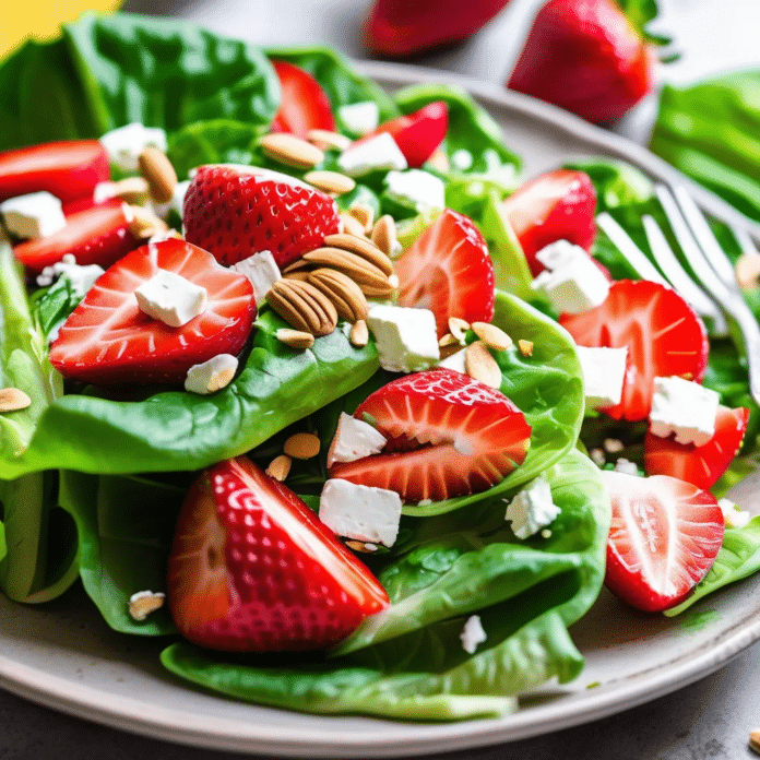 The Crunchy Romaine Strawberry Salad is a refreshing and vibrant dish that beautifully combines the crispness of romaine lettuce with the sweet, juicy burst of fresh strawberries. Perfect for a light lunch or as a colorful side for dinner, this salad features a delightful mix of textures and flavors. The crunchy romaine provides a satisfying base, while toasted almonds add a nutty crunch and feta cheese contributes a creamy tang. Drizzled with a tangy balsamic vinaigrette, this salad is as pleasing to the palate as it is to the eye.