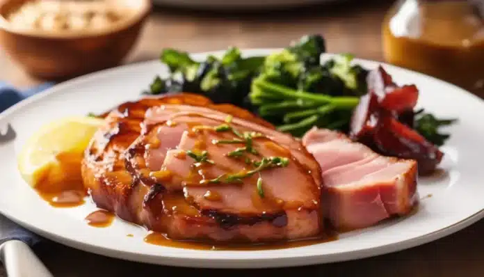 Easy Tasty Ham Steaks with Maple Glaze is a quick and delicious recipe that transforms simple ham steaks into a sweet and savory dish that’s perfect for any meal. The combination of rich maple syrup, tangy Dijon mustard, and a hint of brown sugar creates a luscious glaze that perfectly complements the smoky flavor of the ham. This dish is not only easy to prepare but also comes together in just minutes, making it an ideal choice for busy weeknights or a special breakfast or brunch. Whether served with eggs, roasted vegetables, or a side of potatoes, these maple-glazed ham steaks are sure to be a hit with everyone at the table.