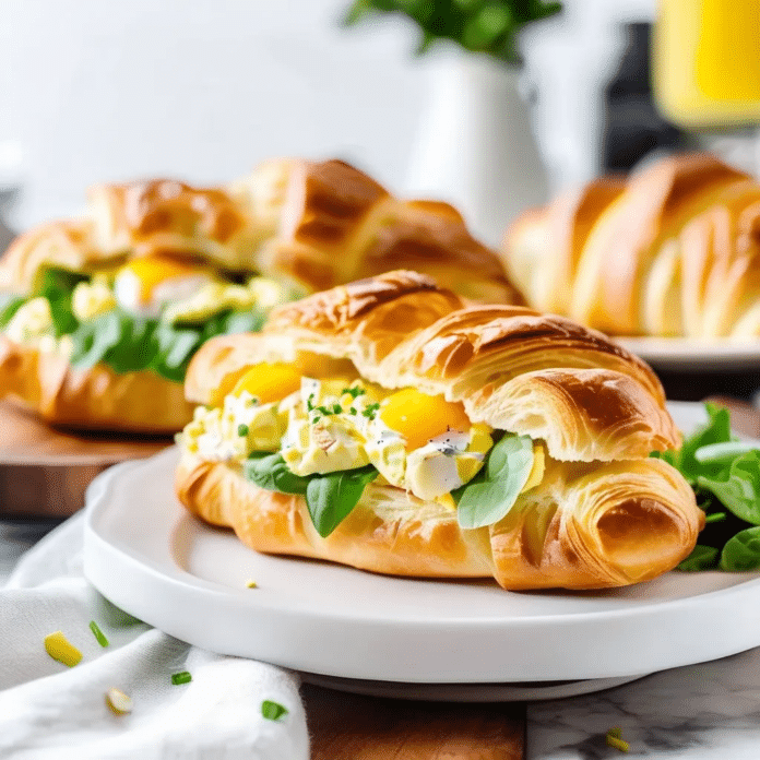 Egg Salad Croissants are a delightful and elegant twist on a classic egg salad sandwich. The creamy and flavorful egg salad, made with perfectly hard-boiled eggs, tangy mayonnaise, and a hint of mustard, is nestled inside a buttery, flaky croissant. This combination creates a deliciously satisfying meal perfect for brunch, lunch, or a light dinner. These egg salad croissants are easy to prepare and make a great impression whether you’re serving guests or enjoying a quiet meal at home.