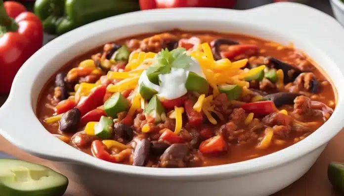 Fajita Chili is a delightful fusion of two favorite Tex-Mex dishes: fajitas and chili. This hearty dish combines the smoky, savory flavors of traditional fajitas with the rich, comforting warmth of chili. Loaded with tender beef or chicken, vibrant bell peppers, onions, and a medley of spices, this chili offers a unique twist that’s perfect for any occasion. Whether you’re looking to spice up your weeknight dinner or serve something special at a gathering, Fajita Chili is sure to be a crowd-pleaser. Serve it with a side of warm tortillas, a dollop of sour cream, and a sprinkle of fresh cilantro for the ultimate Tex-Mex experience.