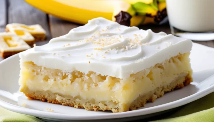 Frosted Banana Bars are a delightful treat that combines the moist, tender texture of ripe bananas with the rich creaminess of a sweet frosting. These bars are perfect for using up overripe bananas and make a great snack or dessert for any occasion. The combination of the banana base and the luscious frosting creates a harmony of flavors that will satisfy your sweet tooth and leave you craving more. They’re easy to make and even easier to enjoy, whether you’re sharing them with friends or indulging in a piece yourself.