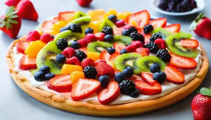 - Slice the fruit pizza like a regular pizza and serve chilled. Enjoy the burst of fresh flavors!