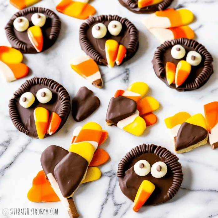 Enjoy making these fun and easy Fudge-Striped Turkey Cookies as a playful addition to your holiday festivities!