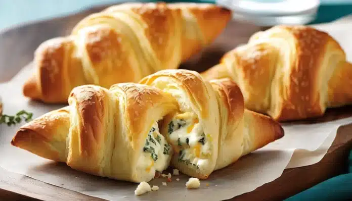 - Roll Up the Crescents: Starting from the wide end, carefully roll up each triangle, tucking in the cheese as you go to prevent it from spilling out. Place the rolls on the prepared baking sheet.